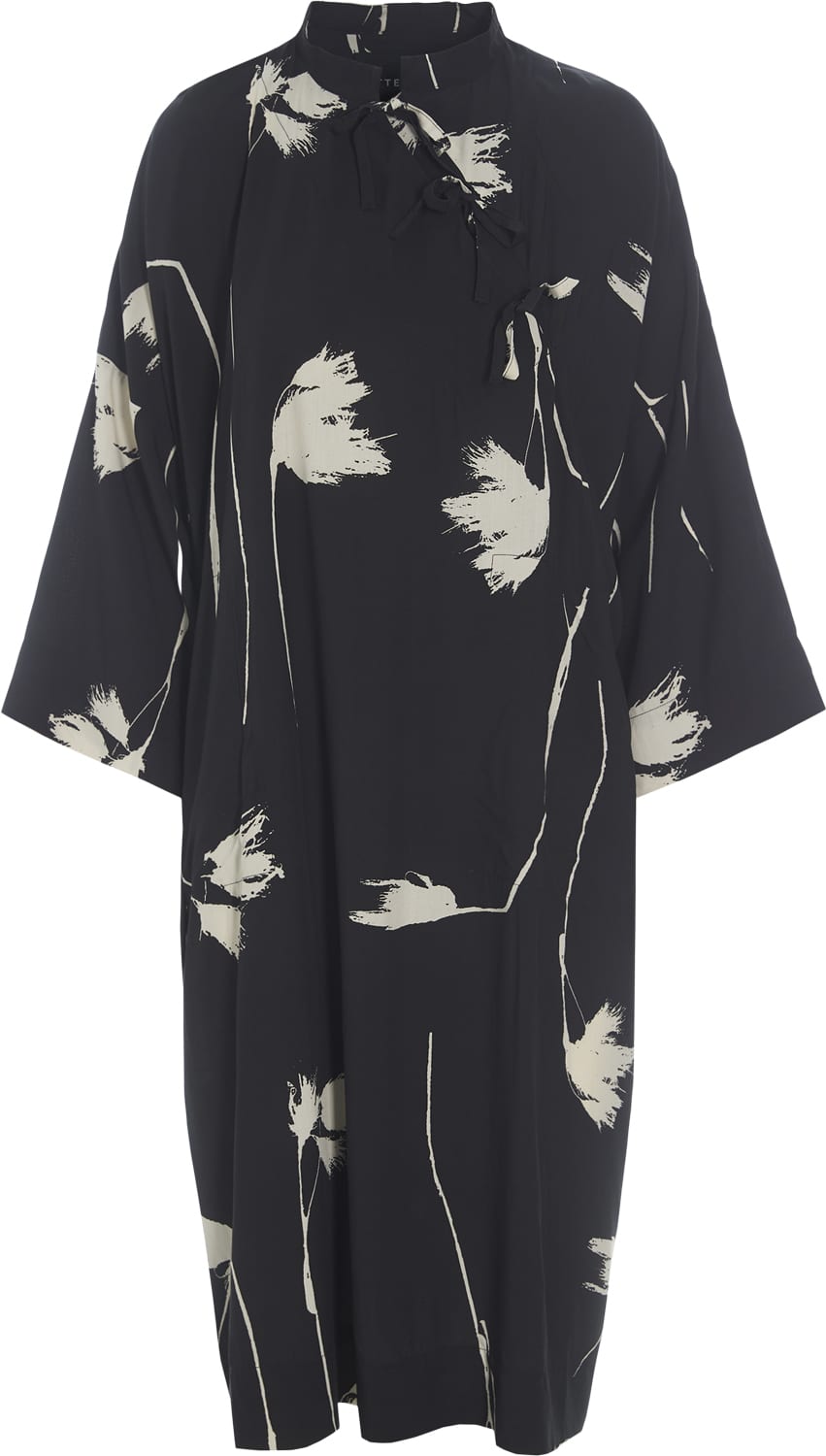 Smuk kjole med et oversize snit. Kjolen er en enkel og hurtig vej til et flot look. Med den asymmetriske lukning og det smukke print er kjolen anvendelig til hverdag såvel som til festlige lejligheder. ?Kinakrave ?Asymmetrisk lukning med bindebånd?Lange æ