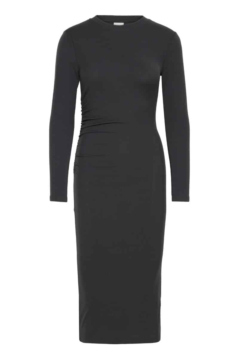 En nem kjole til garderoben fra Ichi. Den er med stræk i kvaliteten og derfor også god som graviditetskjole. Den kan nemt bruges under en blazer til fest eller en strik til hverdag.Â