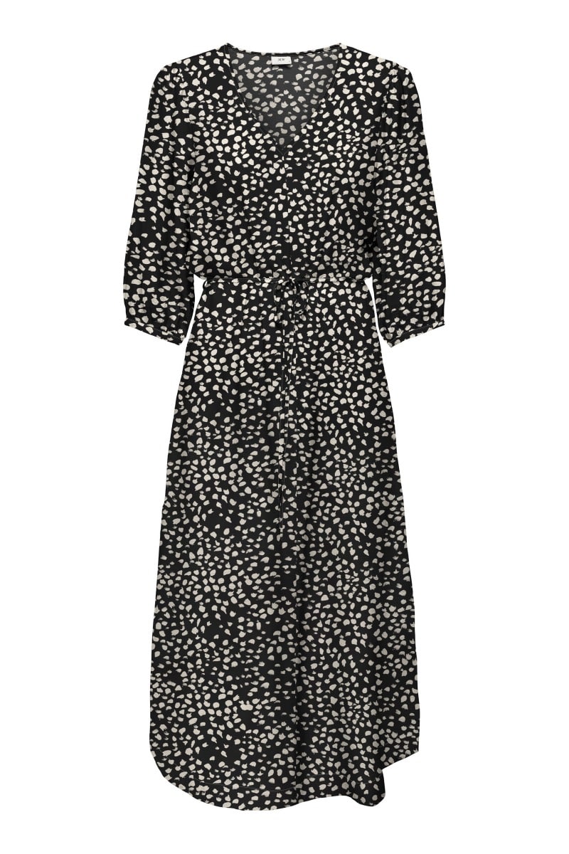 Fin kjole fra JDY. Denne kjole har et enkelt design. Kjolen har bindebånd i taljen samt v-udskæring. Ærmerne er 3/4 og kjolen har en behagelig og luftig kvalitet. En kjole som er nem at bruge til hverdag, men bestemt også til en sommerfest eller fødselsda