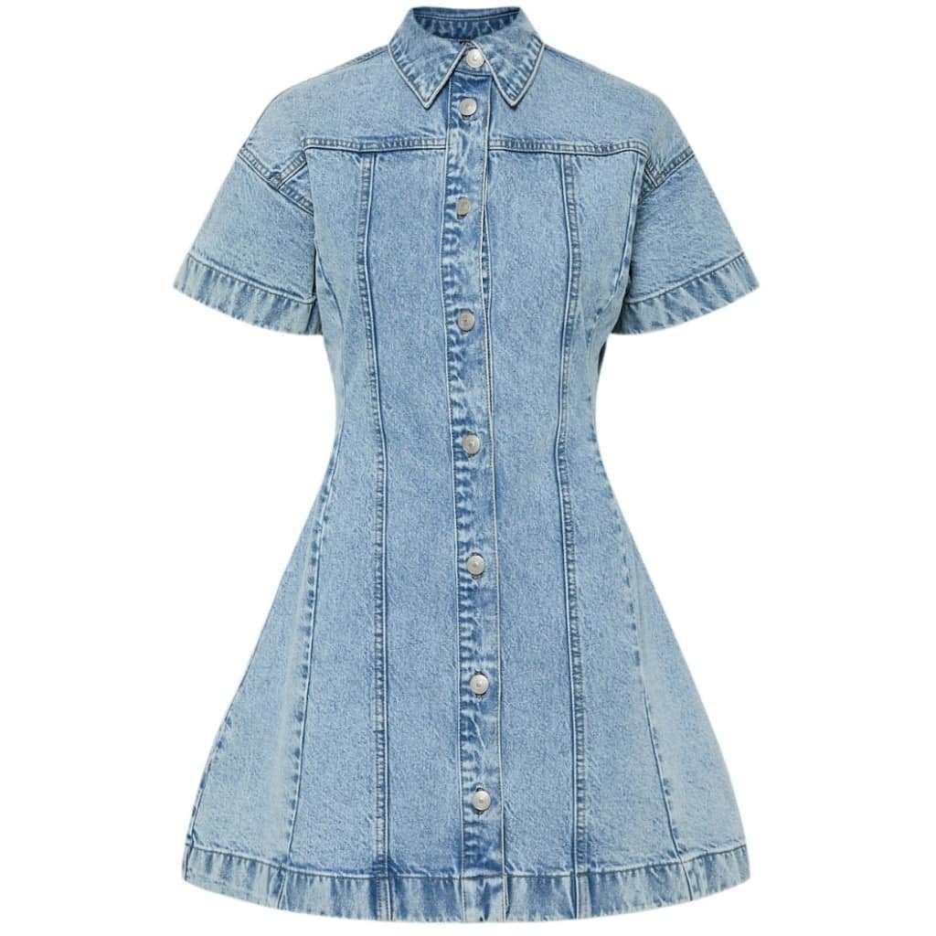 Super smuk denimkjole i den fedeste vask. Kjolen har knapper langs fronten og er figursyet, så du får fremhævet din talje. Ideel til både hverdag og fest med sandaler og ballerinaer. – Trendy- Denim- FemininMateriale: 99% Cotton, 1% Elastane