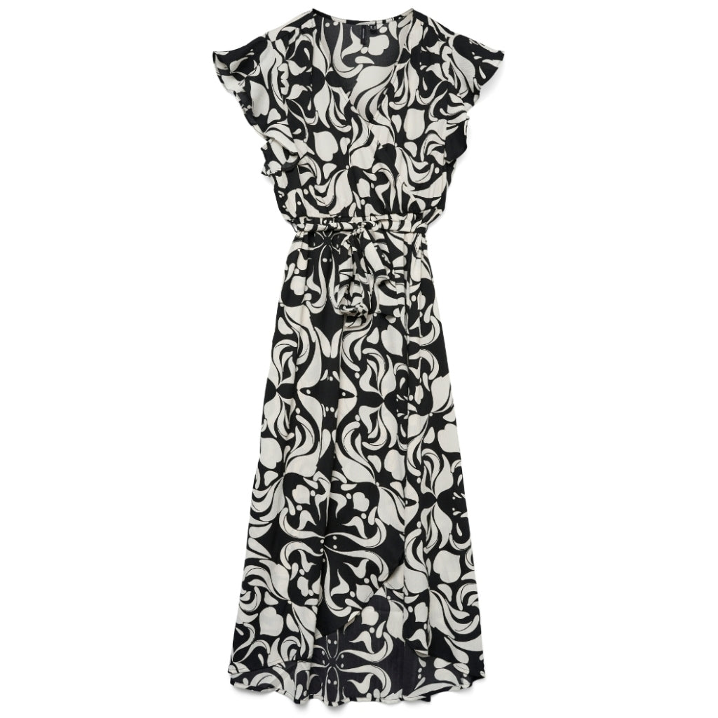 Smuk maxi-kjole fra Vero Moda med fine detaljer. Kjolen har flæseærmer og v-hals samt justerbart taljebånd der fremhæver din figur. Den er fremstillet i et let, lækkert stof og er perfekt til både hverdag og finere anledninger. – Flæseærmer- V-hals- Talje